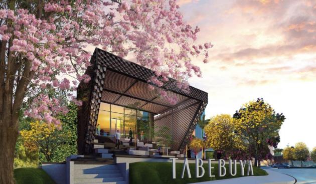 Sebelum memasuki kawasan Tabebuya, penghuni akan dimanjakan dengan pemandangan luas menghadap danau Vanya Park seluas 8 hektar serta akan disambut oleh gerbang yang di desain secara iconic dan dilengkapi hanging garden berhiaskan bunga dari pohon Tabebuya. Area ini dilengkapi dengan outdoor lounge dan dining area bergaya seperti resort di Bali.