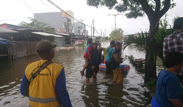 Banjir di kawasan tersebut sudah terjadi sejak Sabtu (1/2/2020). Diduga banjir belum surut karena hujan terus-menerus dan meluapnya Kali Ledug.