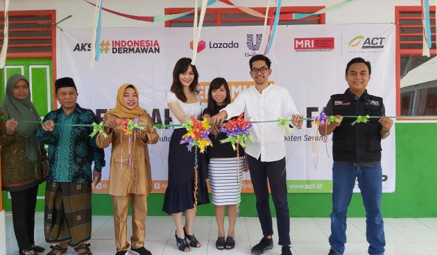 TANGERANGNEWS.com-PT Unilever Indonesia, Tbk. dan Lazada meresmikan sekolah Madrasah Diniyah (MD) Nurul Falah Serang, Banten.