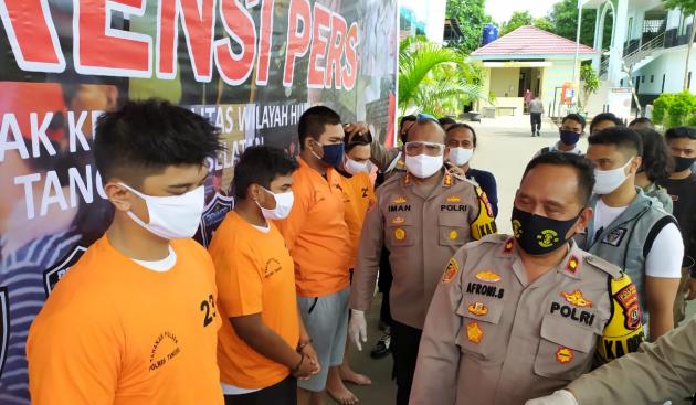 Kelima tersangka yang dibekuk di wilayah Pondok Karya, Pondok Aren, Tangerang Selatan, pada Minggu (24/5/2020) dini hari itu kini diamankan di Mapolsek Pondok Aren. Kelimanya dikenakan Pasal 368 KUHP, tentang perampasan dan pengancaman dengan hukuman maksimal sembilan tahun.(RMI/HRU)
