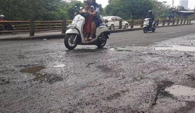 Tampak jalan rusak dan berlubang di Jembatan Jaletreng di Cilenggang, Serpong, Tangerang Selatan. (wartakota / wartakota)