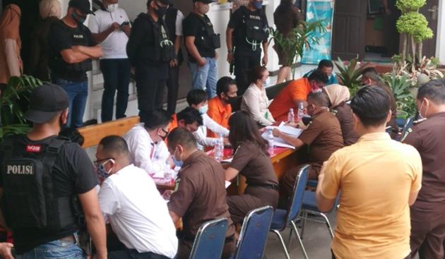 Pantauan TangerangNews di kantor Kejaksaan Negeri Kota Tangerang, Rabu (19/8/2020) pukul 13.20 WIB, para tersangka secara bergiliran mengisi formulir tahap dua pelimpahan perkara.