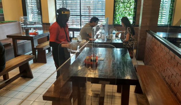 Satu lagi protokol andalan di Bebek Kaleyo, yaitu penerapan pembatas acrylic pada setiap meja demi menghindari adanya droplets antar pengunjung. Pembatas ini rutin dlsemprot disinfektan untuk pengunjung baru.