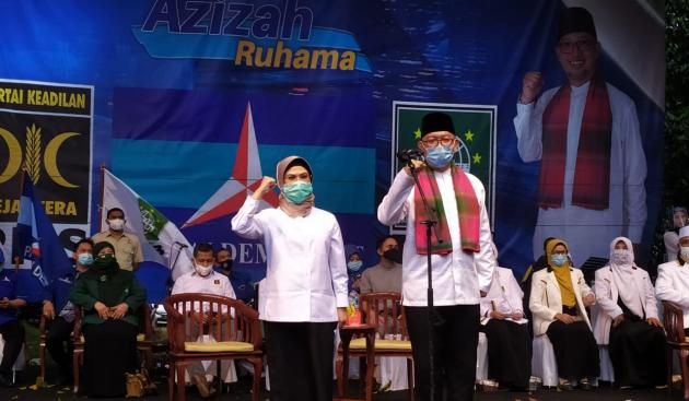 TANGERANGNEWS.com-Deklarasi pasangan bakal calon Wali Kota dan Wakil Wali Kota Tangerang Selatan Siti Nur Azizah-Ruhammaben digelar di Pulau Situ Gintung, Cireundeu, Ciputat Timur, Tangsel, Rabu (2/8/2020).