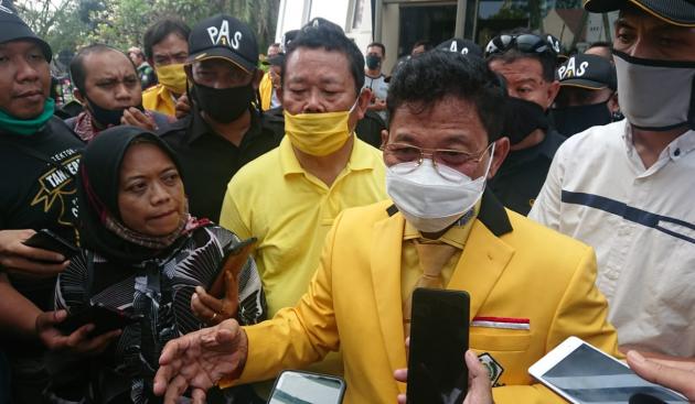 Sachrudin saat diwawancarai wartawan usai terpilih kembali sebagai Ketua DPD Golkar Kota Tangerang, Rabu (8/7/2020). (@TangerangNews / Achmad Irfan Fauzi )