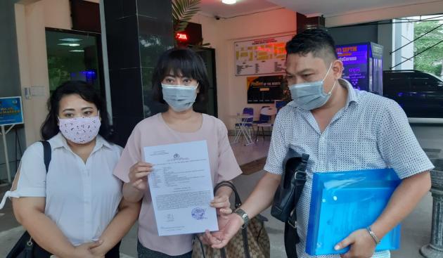 Yuanita Safira didampingi kuasa hukumnya usai melaporkan kasus perusakan hoarding milik perusahaannya di Mapolresta Tangerang, Senin (12/10/2020). (TangerangNews / Istimewa)
