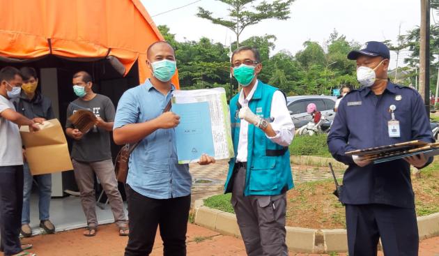 Pasien sembuh COVID-19 saat dipulangkan dari Rumah Lawan COVID-19 (RLC) Tangerang Selatan, Kamis (29/10/2020). (TangerangNews / Rachman Deniansyah)