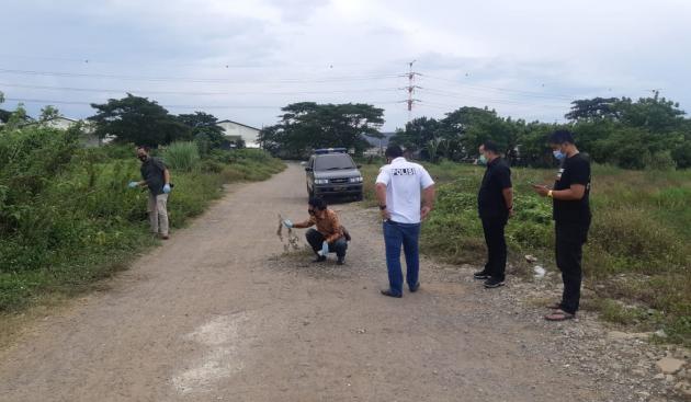 Para penyidik saat melakukan olah tempat kejadian perkara (TKP) kasus pembunuhan di Jalan Kampung Bayur, Periuk, Kota Tangerang. (TangerangNews / Achmad Irfan Fauzi)