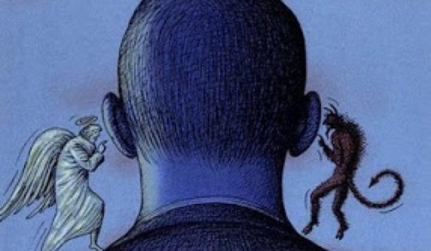 Ilustrasi Pria Tampan sedang dibisiki oleh malaikat dan setan. (Istimewa / Istimewa)