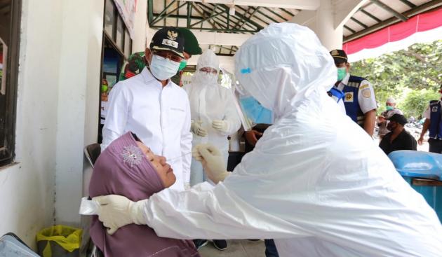 TANGERANGNEWS.com—Pemerintah pusat bersama pemerintah daerah Kota Tangerang menggelar rapid test antigen bagi para penumpang serta pengemudi bus di Terminal Poris Plawad, Kota Tangerang, Jumat (25/12/2020).