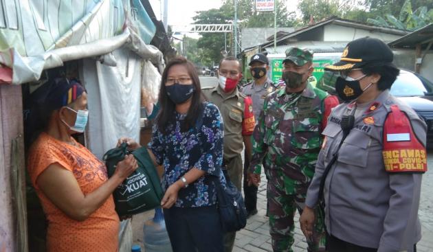 Dalam pembagian bansos itu, Erliwani didampingi Kapolsek Neglasari Kompol Rosiana, Babinsa Serma Khori, Danru Trantib Kecamatan Neglasari Moch. Yusuf dan perwakilan RT/RW. (RAZ/RAC)