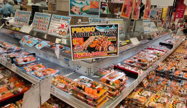 Sushi kini hampir digemari oleh semua kalangan, dari anak muda hingga orang tua. Makan sushi tidak harus mahal, karena Aeon Mall menyediakan berbagai macam jenis sushi dengan harga yang relatif murah.