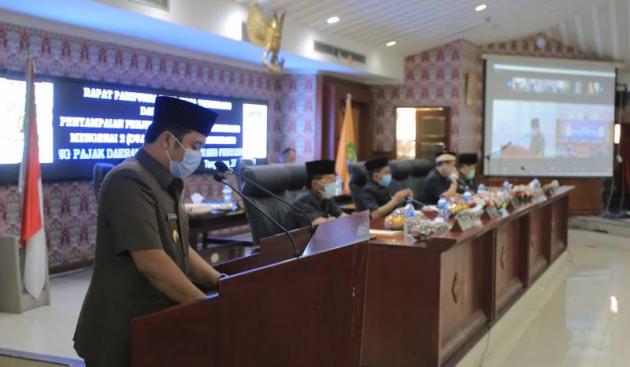 Arief menjelaskan dua Rancangan Peraturan Daerah (Raperda) di antaranya perihal Raperda Tentang Pertanggungjawaban Pelaksanaan APBD TA 2020 dan Raperda Tentang Perubahan Keempat Atas Perda Nomor Tujuh Tahun 2020 Tentang Pajak Daerah.