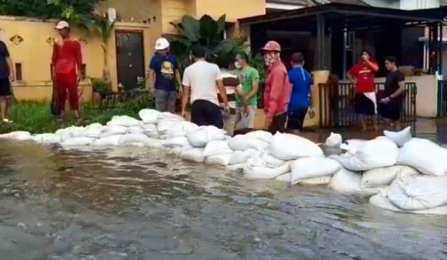 Atas hal itu, debit air pun meluap dan tumpah ke area perumahan Nerada Estate, Cipayung, Ciputat, Tangsel.