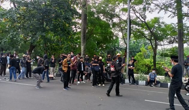 Massa aktivis menggelar demo di kawasan Pusat Pemerintah Kota Tangerang, Kamis 22 Juli 2021. (@TangerangNews / Achmad Irfan Fauzi )