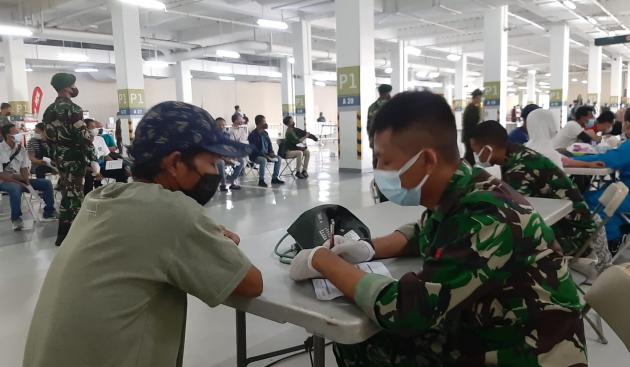 TANGERANGNEWS.com-Komando Distrik Militer (Kodim) 0506/Tangerang menggelar vaksinasi massal bagi ribuan masyarakat di Mal Living Word, Alam Sutera, Serpong Utara, Tangerang Selatan, Minggu, 25 Juli 2021.