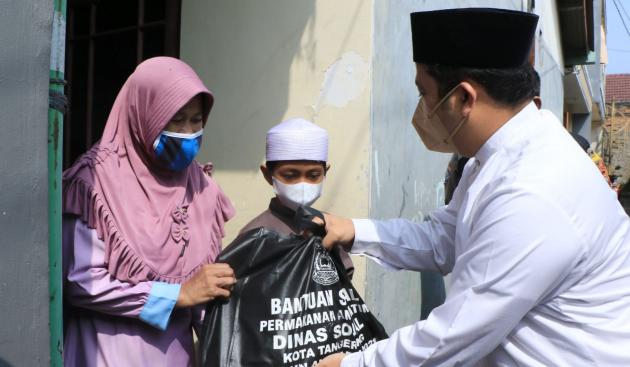 Wali Kota Tangerang Arief R Wismansyah menyerahkan langsung bantuan berupa paket sembako kepada sejumlah perwakilan yatim penerima bantuan di wilayah Kecamatan Larangan.
