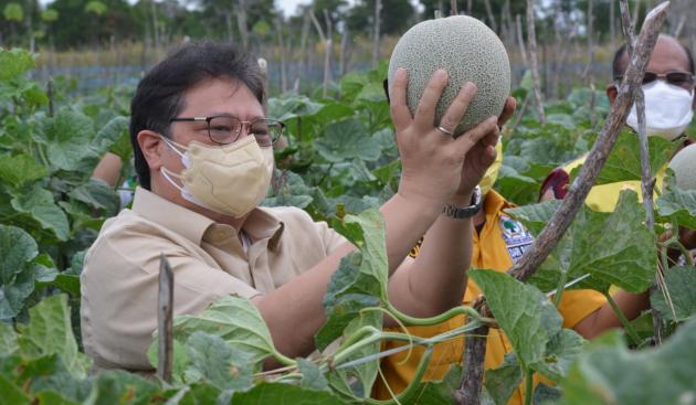 Menko Airlangga juga ikut memanen hasil pertanian berupa cabai tumpang sari dan melon dengan para petani tergabung dalam Kelompok Tani Ngudi Rahayu dari Kelurahan Syamsudin Noor, Kecamatan Landasan Ulin, Kota Banjarbaru dengan jumlah anggota sebanyak 30 orang dan luas lahan tanaman sebesar 28 Ha.