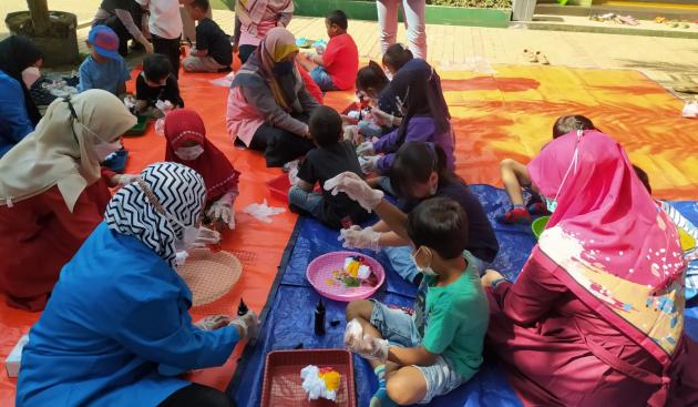 TANGERANGNEWS.com - Mahasiswa Universitas Pamulang (Unpam) Progam Studi S1 Akuntansi melakukan kegiatan Pengabdian Kepada Masyarakat (PKM) dengan tema membuat batik celup ikat bersama anak-anak di TK. AL-Latief yang berlokasi di Jl. Roda Hias RT 004/02 Serpong, Kecamatan Serpong, Kota Tangerang Selatan.