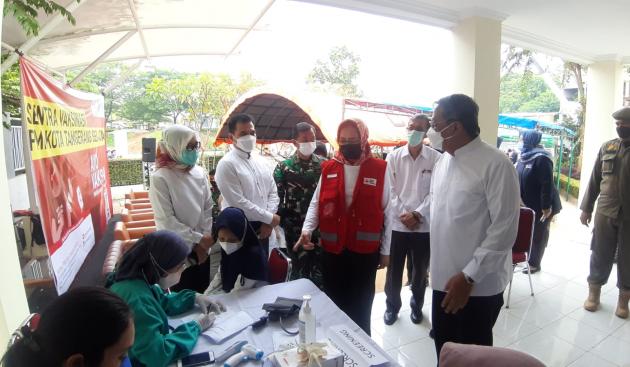 TANGERANGNEWS.com-Mantan Wali Kota Tangerang Selatan (Tangsel) Airin Rachmi Diany mengajak ratusan warga untuk menjalani vaksinasi, di sentra penyuntikan yang didirikan di Gedung Palang Merah Indonesia (PMI) setempat, Jumat, 8 Oktober 2021.