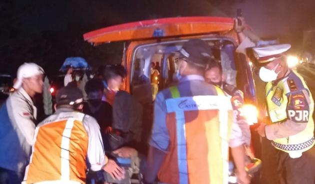 Korban kecelakaan beruntun di Tol Tangerang-Merak KM 74 saat dievakuasi. (@TangerangNews / Rangga A Zuliansyah)