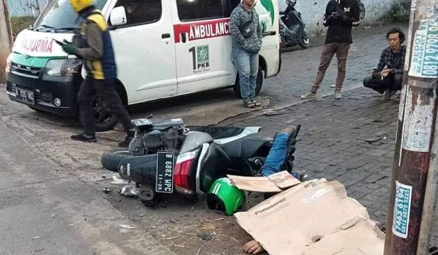 TANGERANGNEWS.com-Kecelakaan maut menewaskan seorang pengendara sepeda motor terjadi di Jalan Pajajaran, Bambu Apus, Pamulang, Tangerang Selatan, Selasa, 23 November 2021.