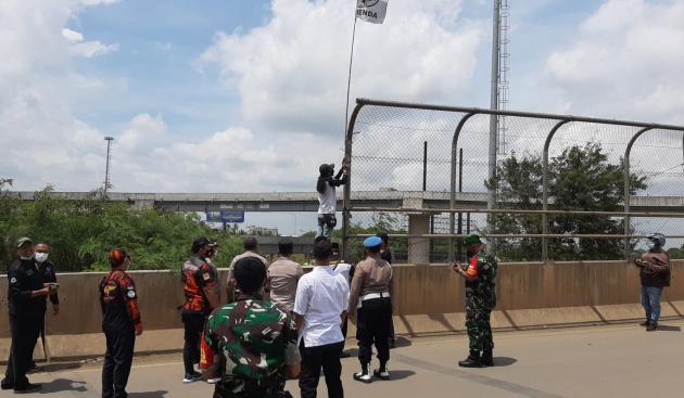 TANGERANGNEWS.com-Atribut-atribut ormas di sejumlah titik di wilayah Kecamatan Benda, Kota Tangerang, diturunkan untuk mengantisipasi keributan.