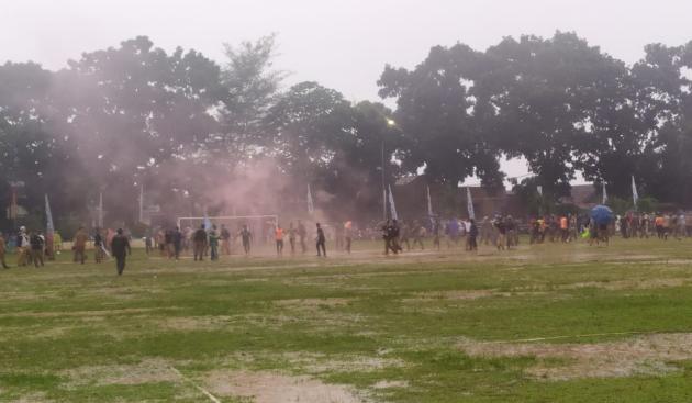 Kedua massa pun akhirnya berhasil dilerai. Kendati demikian, tensi di dalam dan luar lapangan masih memanas.
