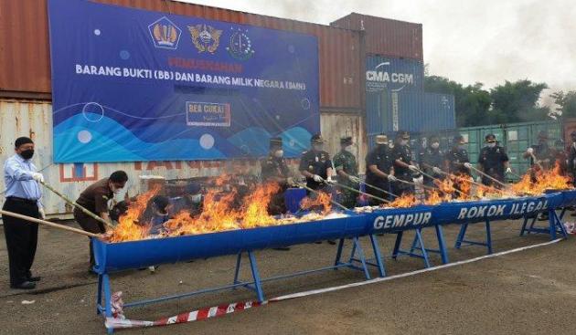 Barang-barang yang dimusnahkan meliputi 2.626.375 batang rokok ilegal, 33.810 botol Minuman Mengandung Etil Alkohol (MMEA) impor ilegal, 910 bale pakaian bekas, 805 potong celana pria bekas, 553 kotak Hasil Pengolahan Tembakau Lainnya (HPTL) ilegal, 262 lembar pita cukai palsu, dan 141 rol tekstil. Potensi penerimaan negara yang tidak diperoleh dari barang-barang tersebut sebesar Rp6,65 miliar