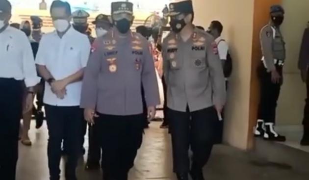 TANGERANGNEWS.com-Kapolri Jenderal Listyo Sigit Prabowo meninjau vaksinasi massal di Gedung Aspirasi KP3B Banten, Kota Serang, Rabu 22 Desember 2021.