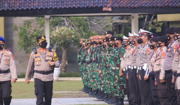 Kesiapan Operasi Lilin Maung 2021 digelar melalui apel yang dipimpin oleh Kapolresta Kombespol Wahyu Sri Bintoro di Lapangan Maulana Yudha Negara, Kamis 23 Desember 2021.