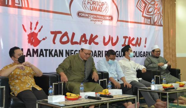 TANGERANGNEWS.comMerespons disahkan Undang-Undang Ibu Kota Negara (UU IKN) oleh DPR RI pada 18 Januari 2022 lalu, Forum Tokoh Peduli Umat (Fortop) Tangerang menyelenggarakan FGD bertajuk ‘Tolak UU IKN! Selamatkan Negeri dari Penguasa Oligarki’.
