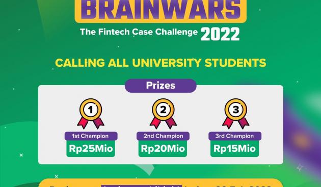 Pendaftaran untuk Bibit Brainwars 2022 telah dibuka dari tanggal 3 Februari 2022 dan akan berakhir di 20 Februari 2022.