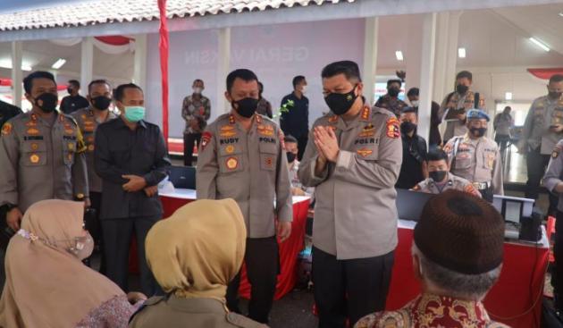 Kapolda Banten Irjen Rudy Heriyanto saat mendampingi Kalemdiklat Polri Komjen Rycko Amelza Dahniel meninjau vaksinasi serentak di Pendopo Bupati Lebak. (@TangerangNews / Bidhumas Polda Banten)