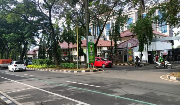 Tampak Jalan TMP Taruna, Kota Tangerang yang menjadi kawasan perkantoran karena keberadaan Pengadilan Negeri Tangerang, Kejari Tangerang, dan Imigrasi Tangerang sepi.
