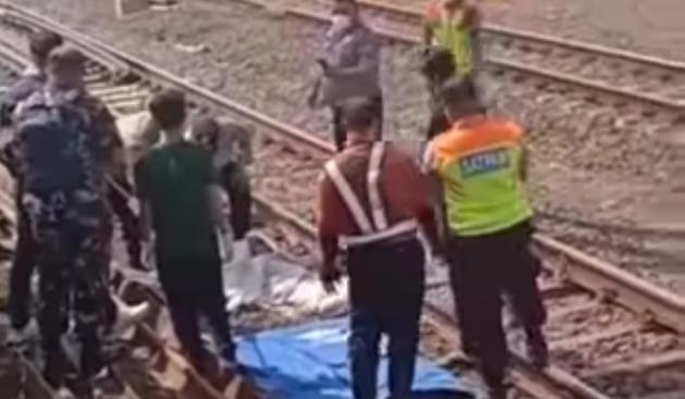 Pekerja gorong-gorong saluran air pinggir rel KRL Stasiun Serpong, Kota Tangsel tewas tertabrak kereta, Jumat 27 Mei 2022. (@TangerangNews / Rangga Agung Zuliansyah)