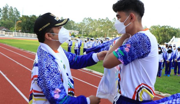 Dalam acara pelepasan tersebut, kontingen Kota Tangerang yang menerjunkan sebanyak 323 personel yang terhimpun dari atlet, pelatih, asisten, ofisial, dan tenaga medis pun kompak mengenakan pakaian olahraga berwarna putih dan biru.