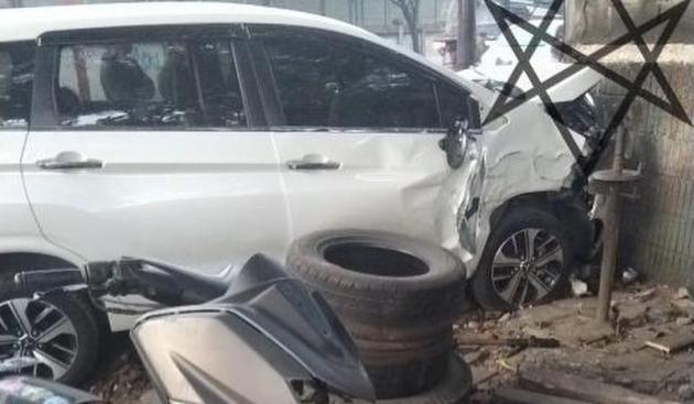 "Kemudian kendaraan XPander menabrak dua sepeda motor," jelasnya.