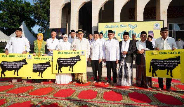 "Inti dari Idul Adha adalah kita membagi untuk mereka yang membutuhkan. Dan dalam situasi wabah PMK, Partai Golkar langsung membagi hewan kurban itu kepada mereka yang membutuhkan,” ujar Airlangga.