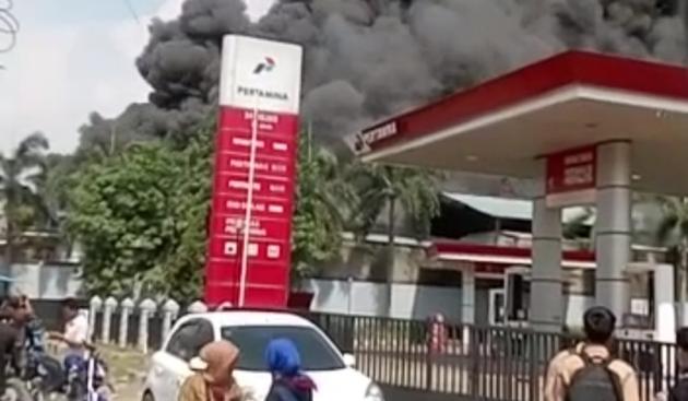 Berdasarkan informasi, pukul 15.45 WIB, api masih terus membara. Pabrik yang terbakar tersebut dindingnya menempel dengan SPBU.