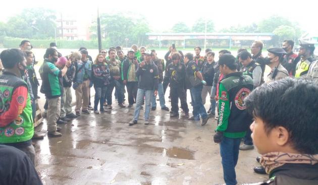 Massa ojol dari Tangerang ini sudah berangkat ke Gedung DPR RI, Jakarta, dengan konvoi menggunakan sepeda motor.