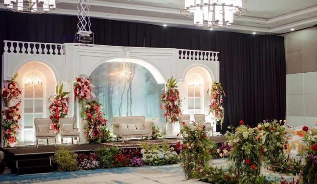 Dekorasi resepsi pernikahan di Grand Ballroom Mercure Serpong Alam Sutera, Serpong, Kota Tangsel. (@TangerangNews / Rangga Agung Zuliansyah)