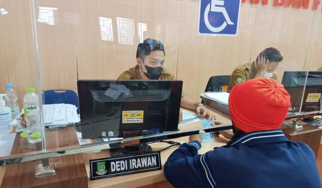 Petugas saat melayani warga di kantor pelayanan Disdukcapil Kota Tangerang di Jalan Perintis Kemerdekaan II, Kelurahan Babakan, Kecamatan Tangerang, Kota Tangerang. (Achmad Irfan Fauzi / @TangerangNews.com)