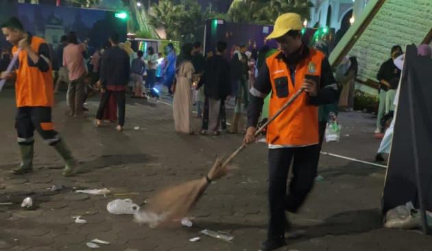Petugas kebersihan diterjunkan Dinas Lingkungan Hidup (DLH) Kota Tangerang di kawasan Festival Al-Azhom ke IX. (@TangerangNews / Rangga Agung Zuliansyah)