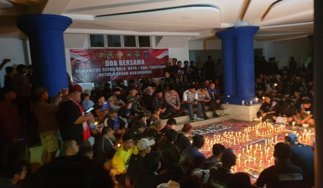 TANGERANGNEWS.com-Komunitas suporter sepak bola se-Tangerang Raya mengelar doa bersama atas tragedi kericuhan di Stadion Kanjuruhan, Malang, Jawa Timur, pada 1 Oktober 2022 lalu.