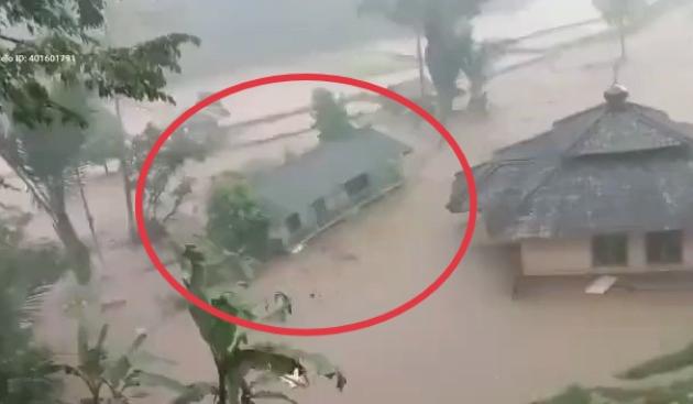 Berdasarkan video yang beredar sosial media, terlihat saat banjir merendam Ponpes, tiba-tiba saja bangunan tiga pintu berukuran panjang yang berada di samping masjid hanyut terbawa arus.