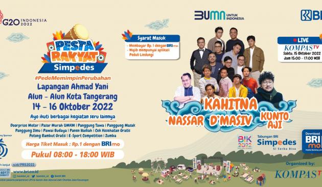 Adapun Pesta Rakyat Simpedes BRI 2022 akan berlangsung hingga Desember 2022 dengan menyambangi 379 titik di seluruh Indonesia. Kegiatan ini dapat dihadiri pengunjung secara langsung ke lokasi maupun menonton melalui Kompas TV dan Kanal Youtube BRI.