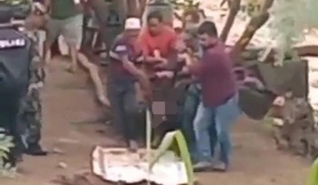Petugas keamanan setempat yang melihat kejadian itu langsung bergegas mencoba menyelamatkan keduanya. Anak korban berhasil dievakuasi, namun korban hanyut dan tenggelam.