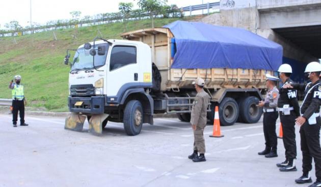 Pantauan di lokasi, terhadap pengemudi yang didapati melanggar langsung diberhentikan. Kemudian diberi imbauan untuk selanjutnya diparkirkan sementara di kantong-kantong parkir yang sudah disiapkan, menunggu sampai dengan jam operasional truk berlaku.