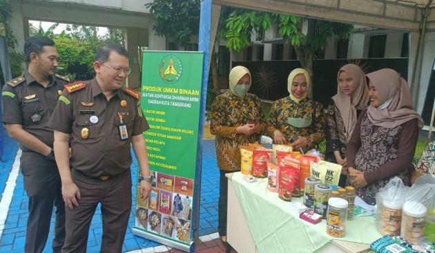 "Kegiatan ini dalam rangka membantu dan mendorong UMKM dengan memfasilitasi adanya bazar. Total ada 21 stan yang sebagian besar memang dari masyarakat," kata Kepala Kejari Kota Tangerang Erich Folanda.